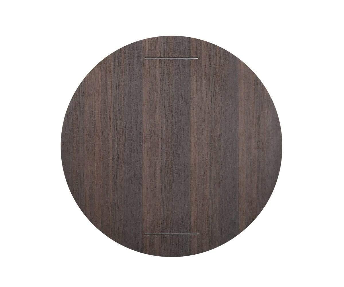 The Agder round coffee table makes a contemporary statement in any space. The circular table top features a smoked oak veneer which complements the black metal base.