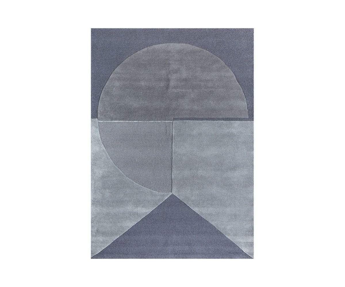 The Ajaye rug is hand-tufted for durability and made with 95% wool and 5% viscose for a subtle sheen. Geometric shapes in greyscale create a modern look. Available in several sizes.