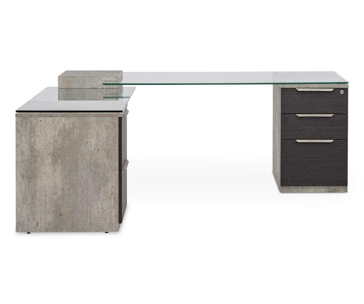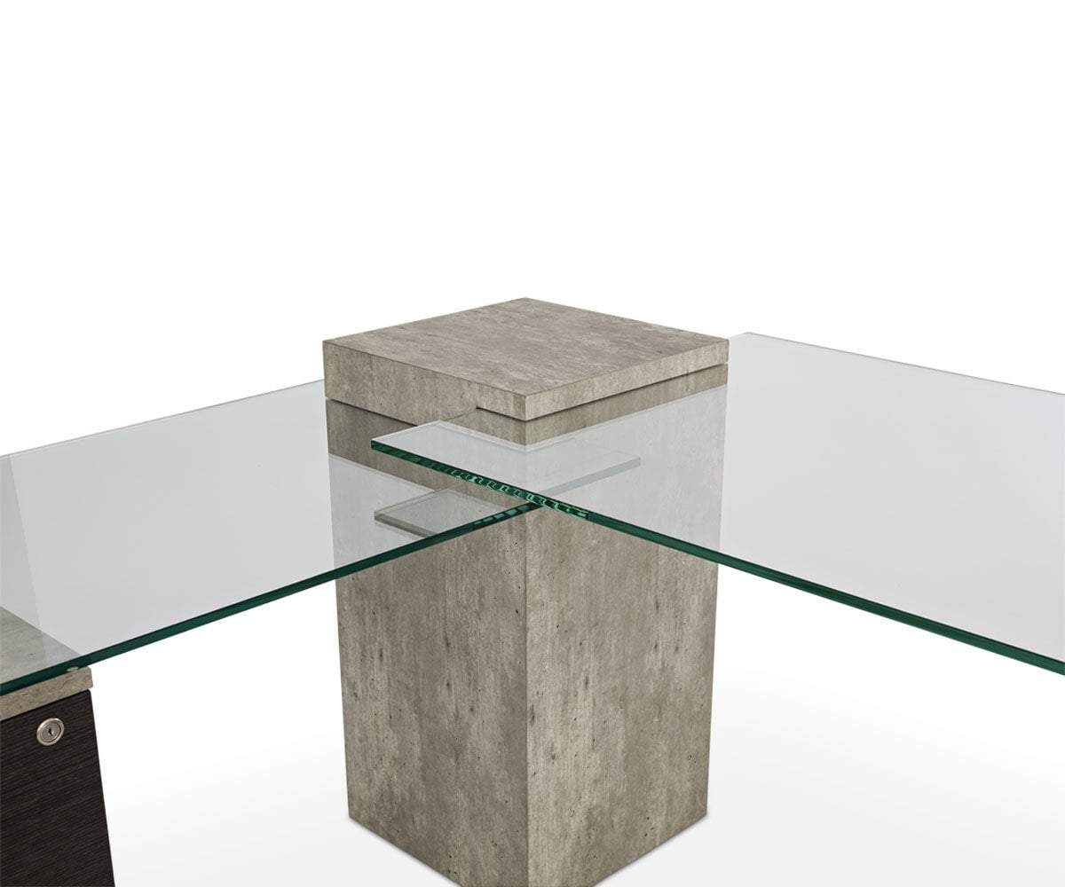 The Alva Executive desk takes on an industrial look and adds classy sophistication with its clear glass surface area. Designed to provide an expansive workspace, the L-shape formation also adds visual interest in your office. If you prefer a clean desk, tuck supplies away in the two storage cabinets that lock for security. Use the Alva Executive desk as the foundation for your professional office space and enjoy conducting business better than usual.