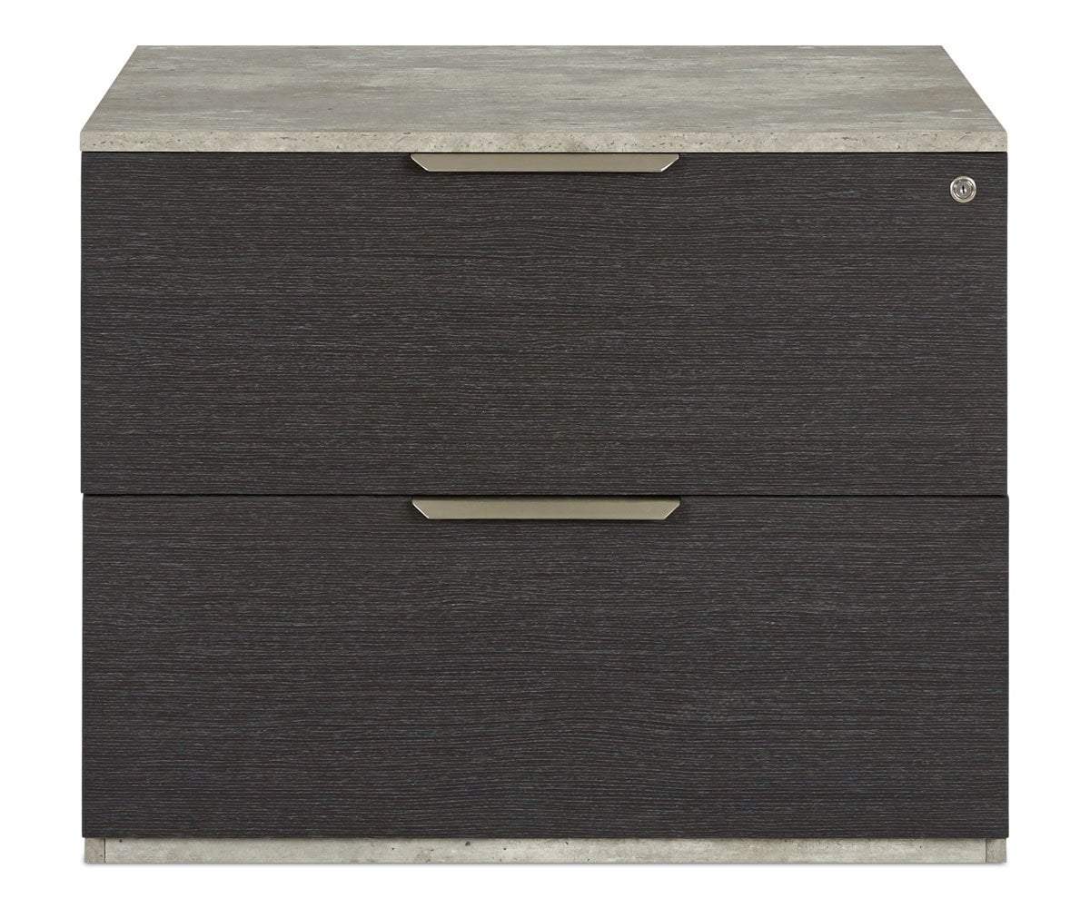 The Alva lateral file cabinet provides ample storage, yet is small enough to tuck into the most convenient spot in your office. Designed with a minimalist profile, the industrial look is complemented by the neutral color palette. The result is a handsome impact on your office. Make use of the two large drawers and a key lock for privacy. Coordinates wonderfully with the rest of the Alva collection.
