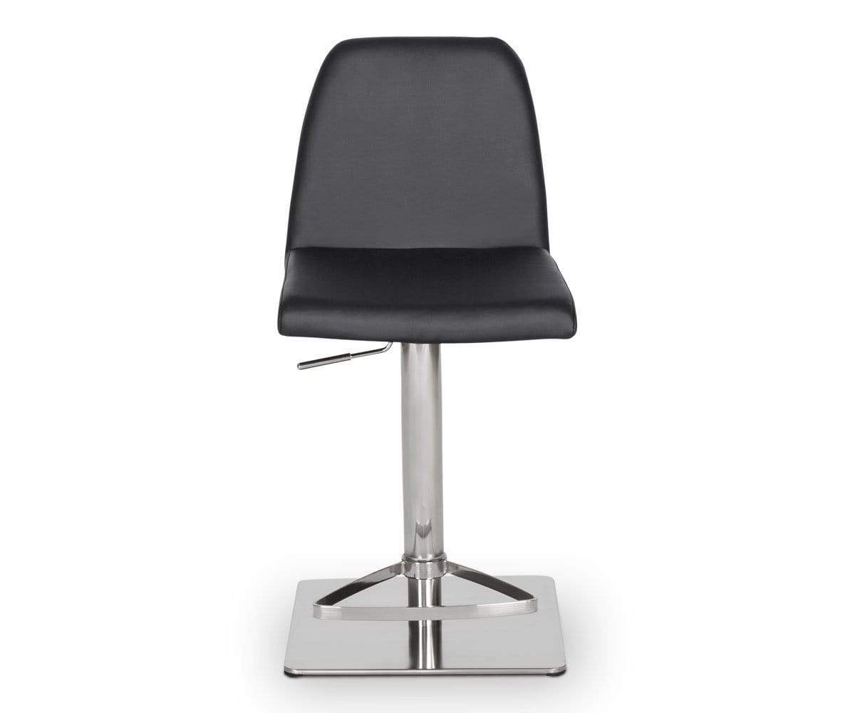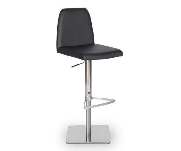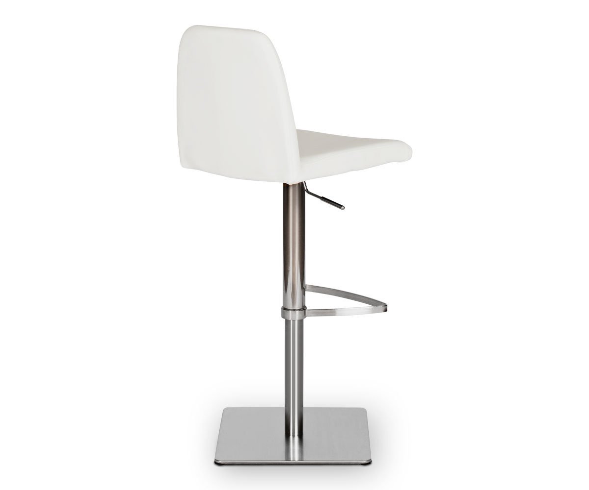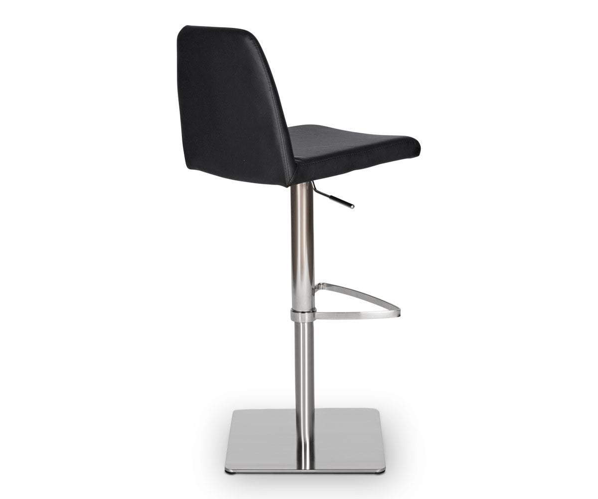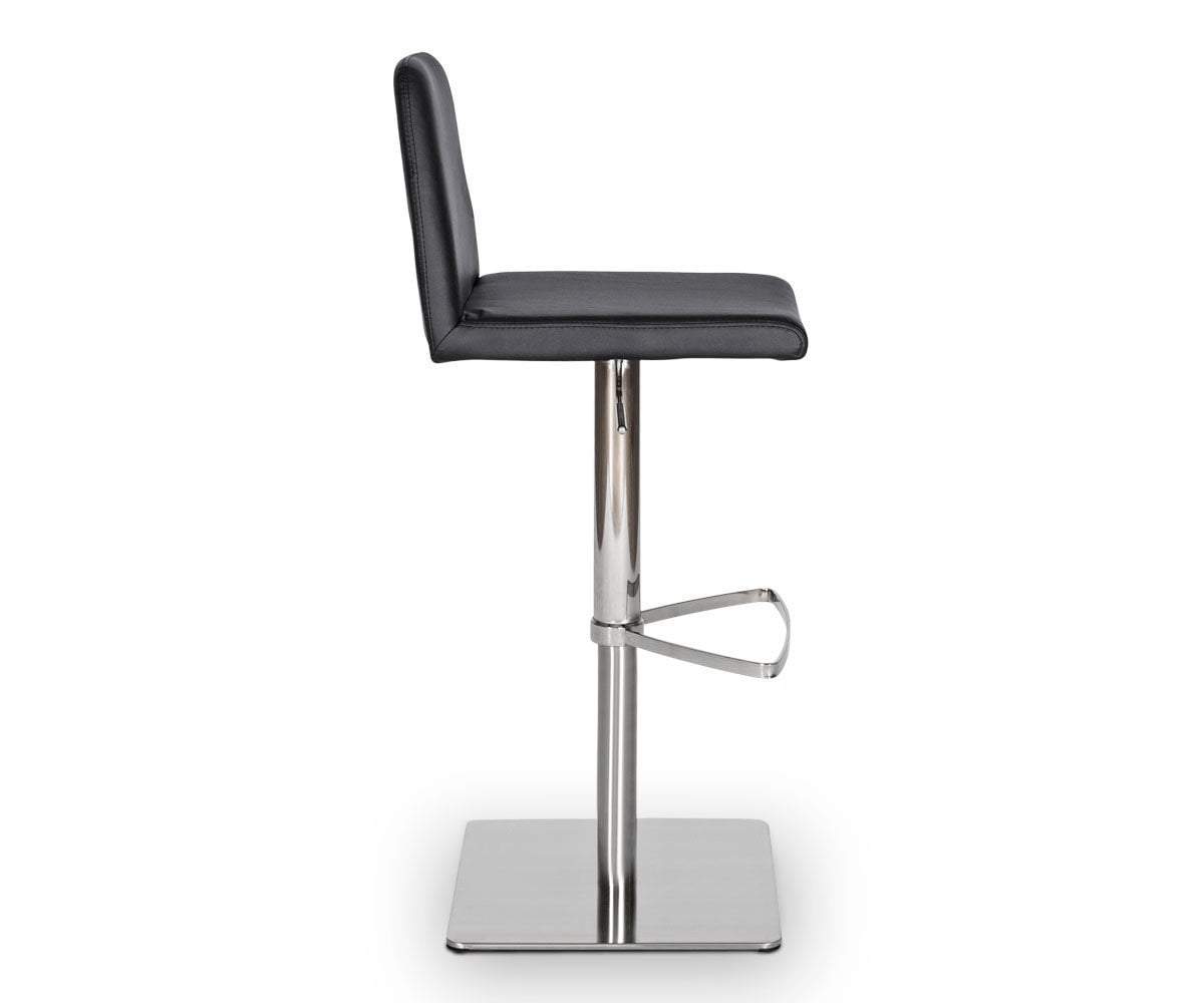 Classic comfort and minimalist modern style define the Amagi adjustable counter and bar stool pairing a nickel-plated metal and brushed stainless steel base with an understated seat cushion and back.