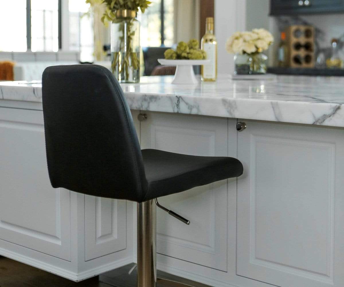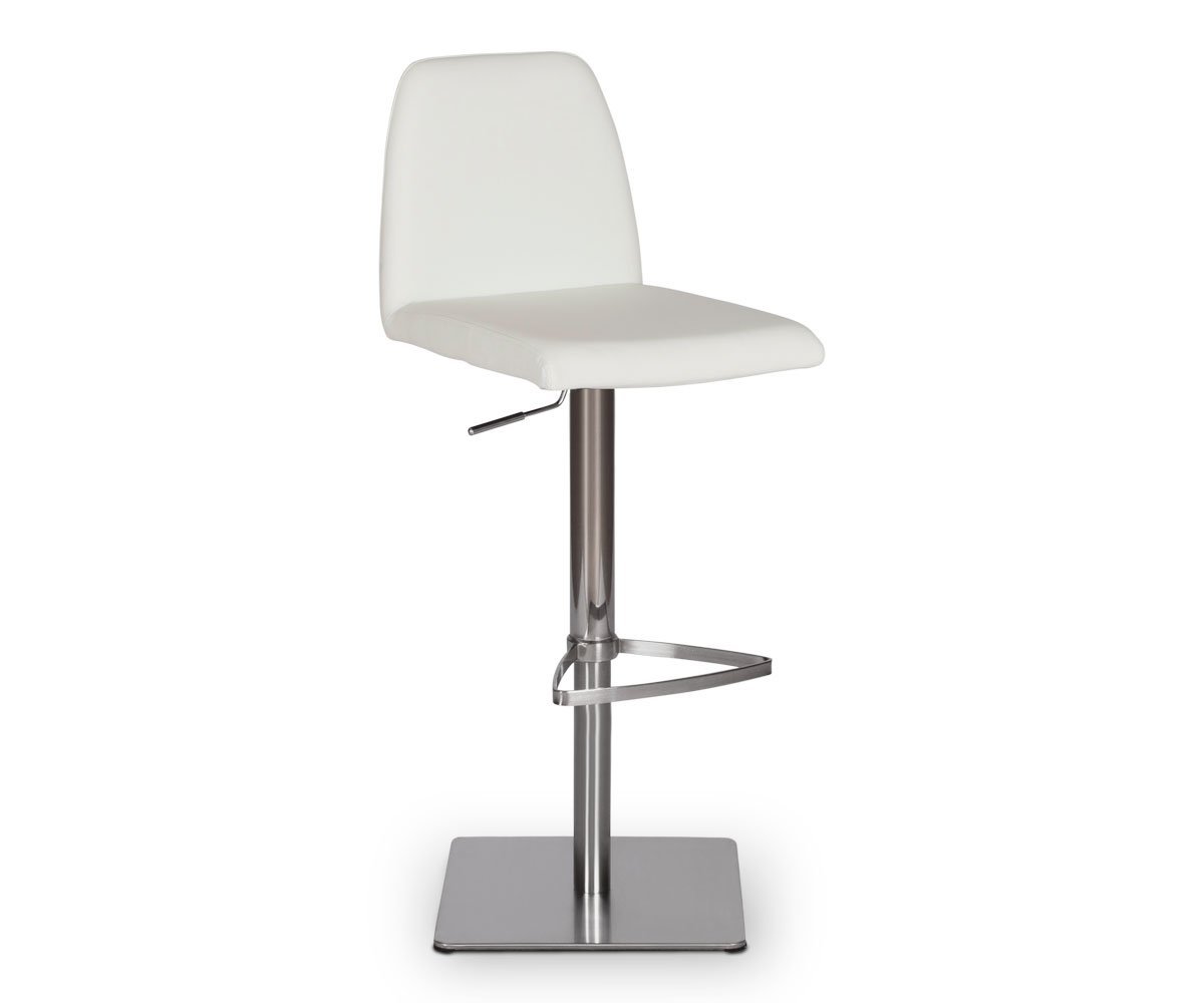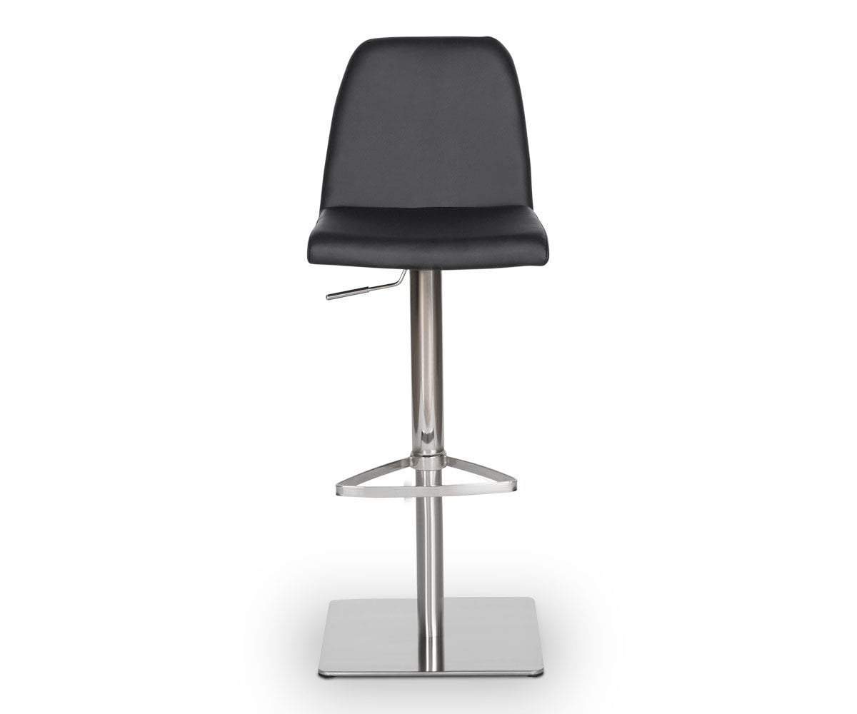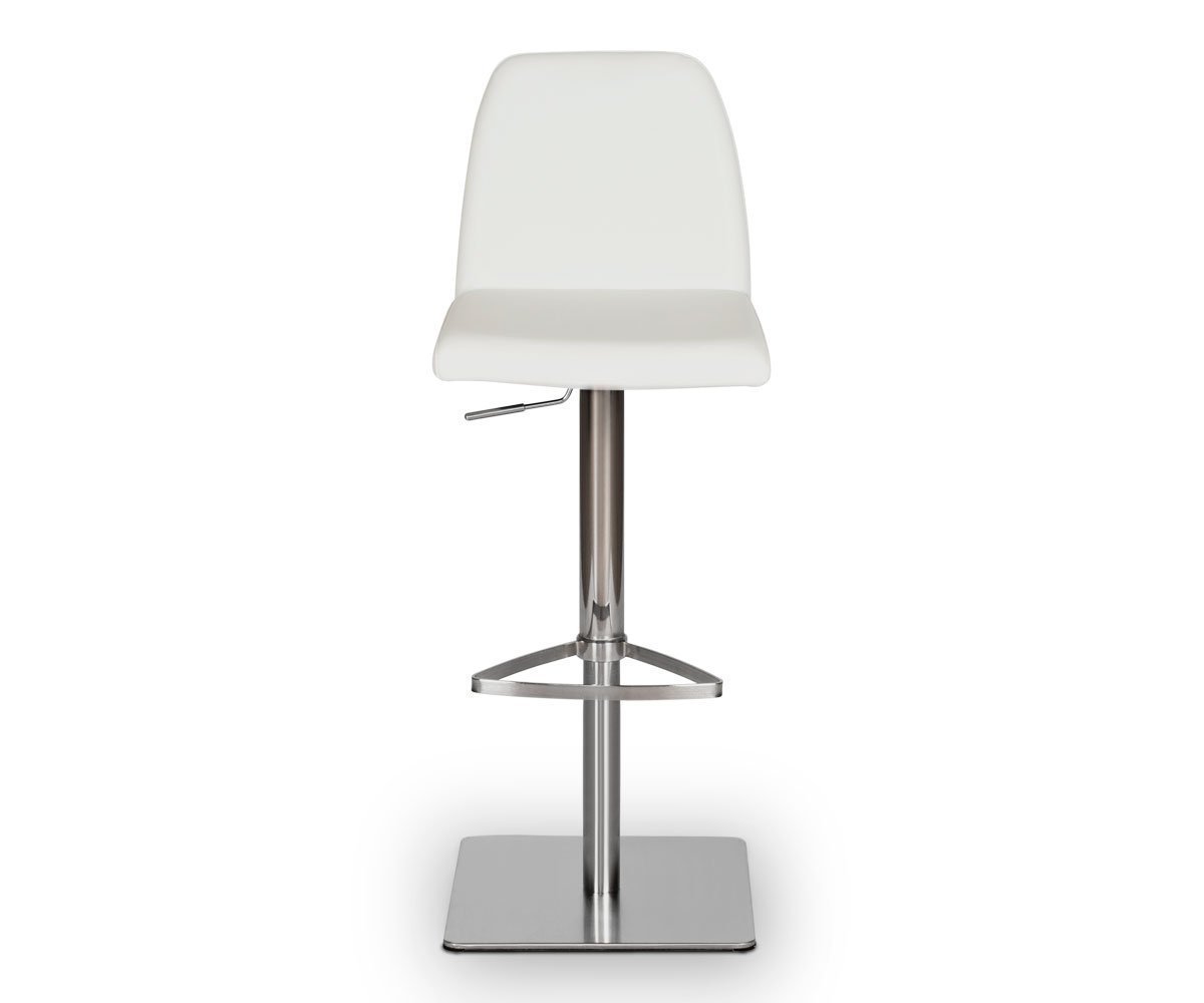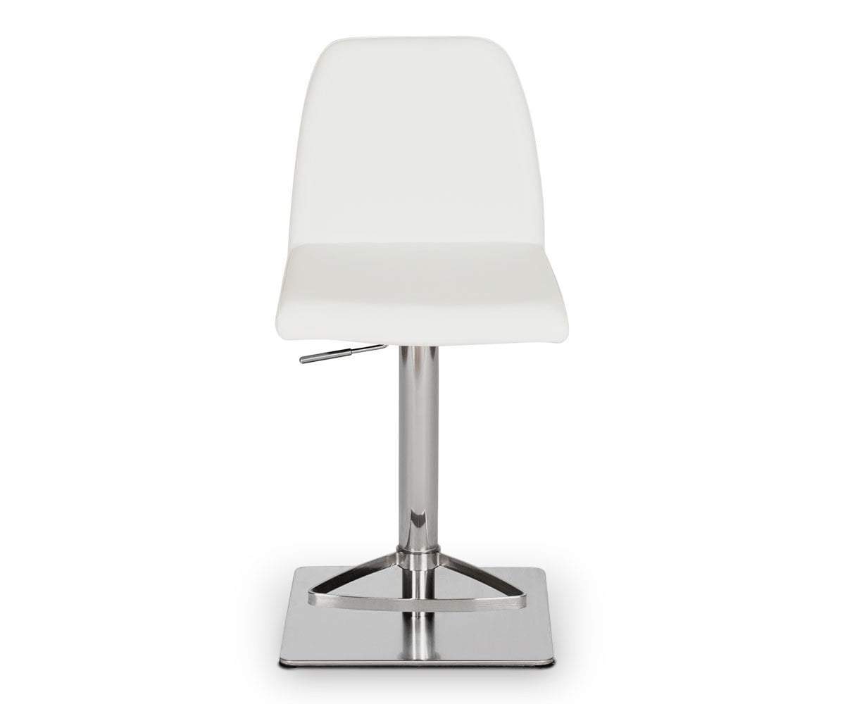 Classic comfort and minimalist modern style define the Amagi adjustable counter and bar stool pairing a nickel-plated metal and brushed stainless steel base with an understated seat cushion and back.