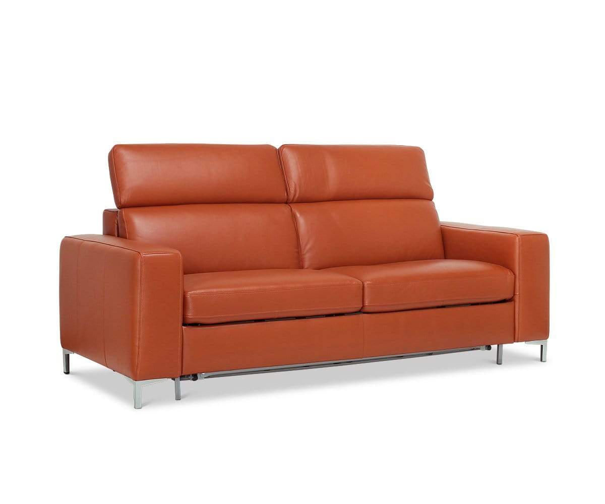 The Andrew queen sleeper brings attractive modern style to your home and makes hosting overnight guests a breeze. Thick, plush cushioning provides comfort and support. Adjustable headrests are perfect for switching from a conversational lounge-like feel to movie and entertainment mode. With a solid hardwood frame and chrome legs, it’s built to stand the test of time. A queen gel mattress is included.