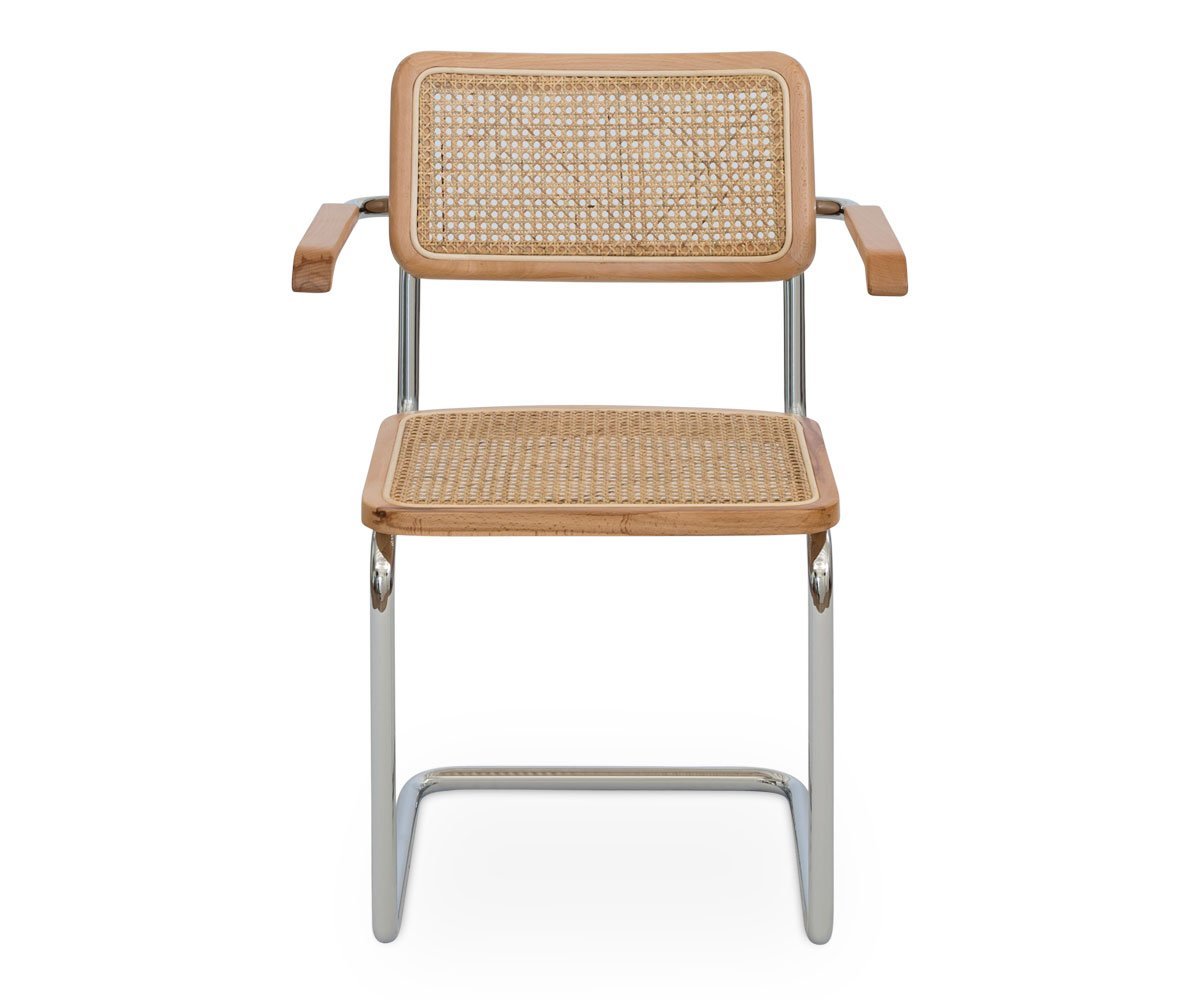 With an unmistakable mid-century look, the Bendt armchair masterfully combines elements to create an appealing addition to your dining room. The distinctive design features a cane seat and backrest bordered in solid European beech wood which are secured to the cantilevered metal frame finished in polished chrome. Armrests made of the same materials wrap around to allow for a comfortable resting position making mealtime, quality time.