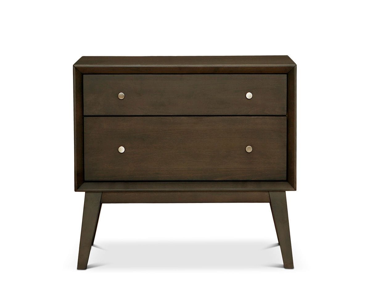 Keep all your essentials on-hand with the Bennett nightstand. This contemporary piece is crafted from solid beech with a smoky, dark stain that adds visual interest to your bedroom space.
