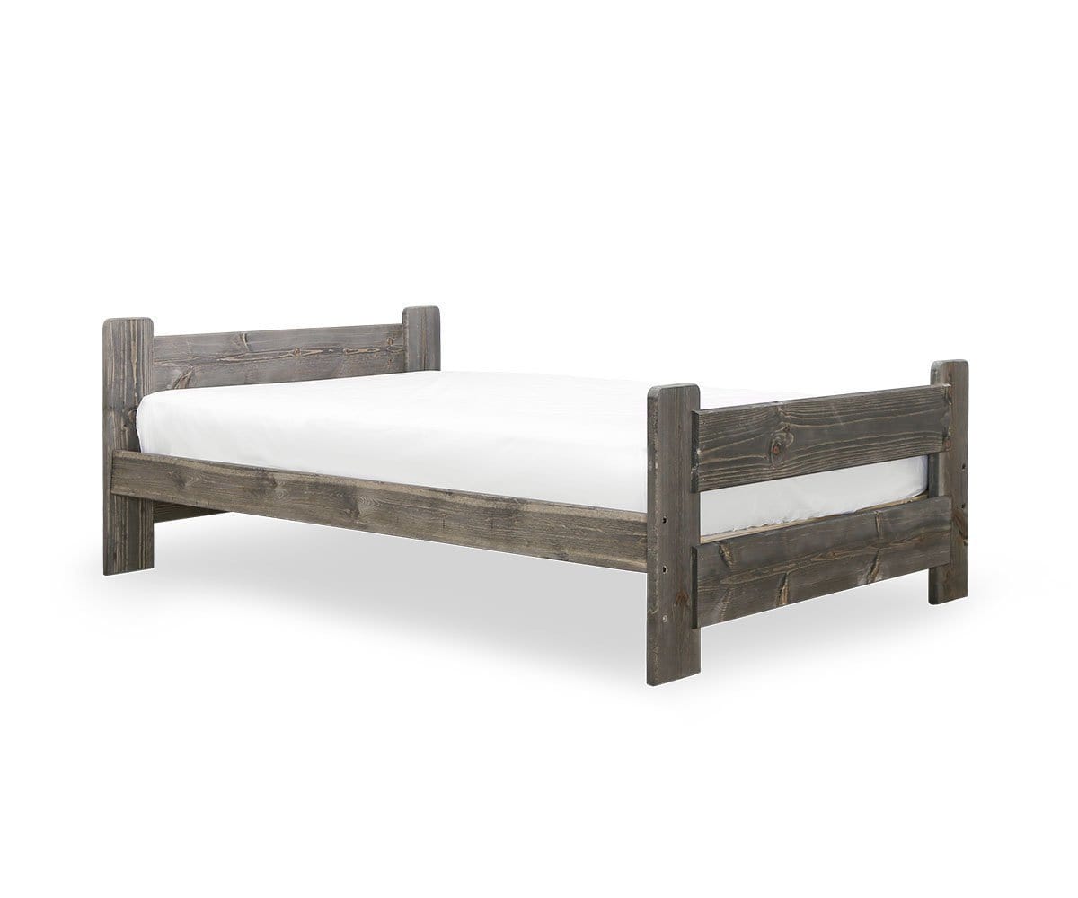 Make your big dreamer's space that much dreamier with the Brennan bed. It's crafted from solid Northern California pine and finished with a grey driftwood stain for an organic look and feel. The finishing process makes it easy to sand and refinish if the surface is nicked. Available in Twin and Full sizes. Storage drawer not included.
