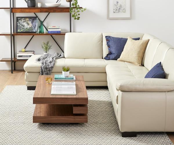 The Cercis all-leather sectional makes a bold statement with a strong silhouette. The clean lines of the plush leather seat back and detailed tufting on the seats combine for the ultimate in comfort and style.