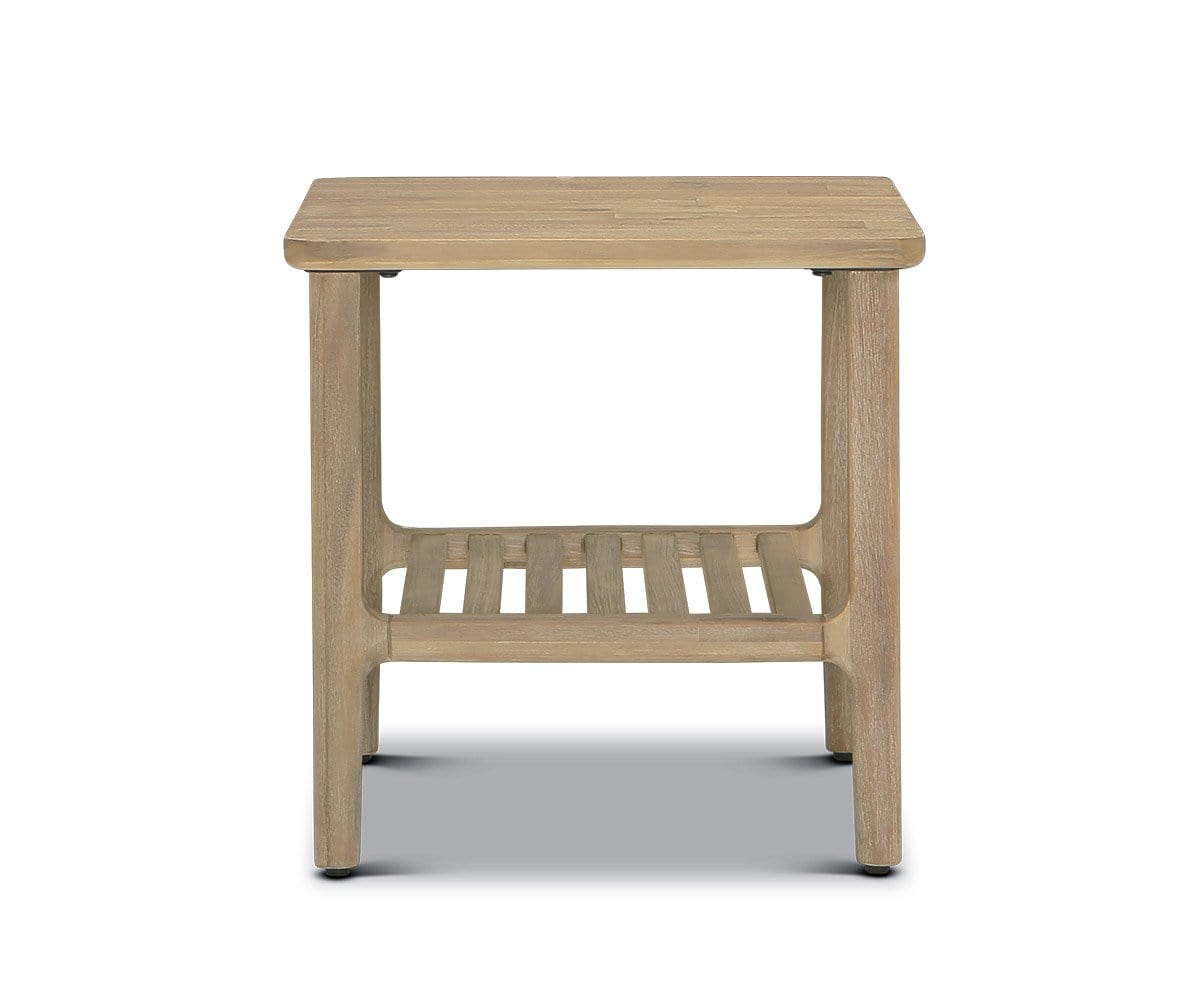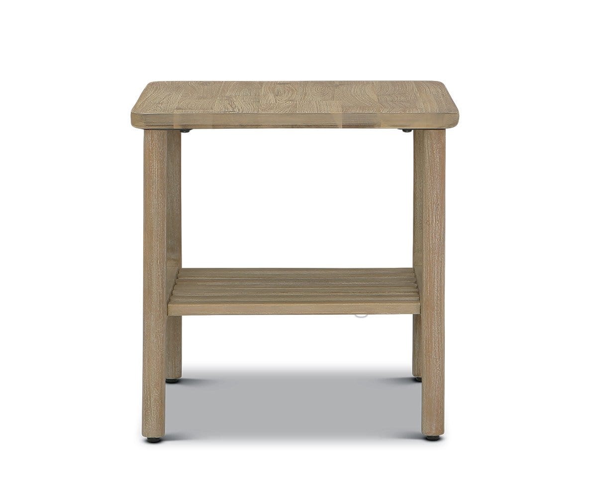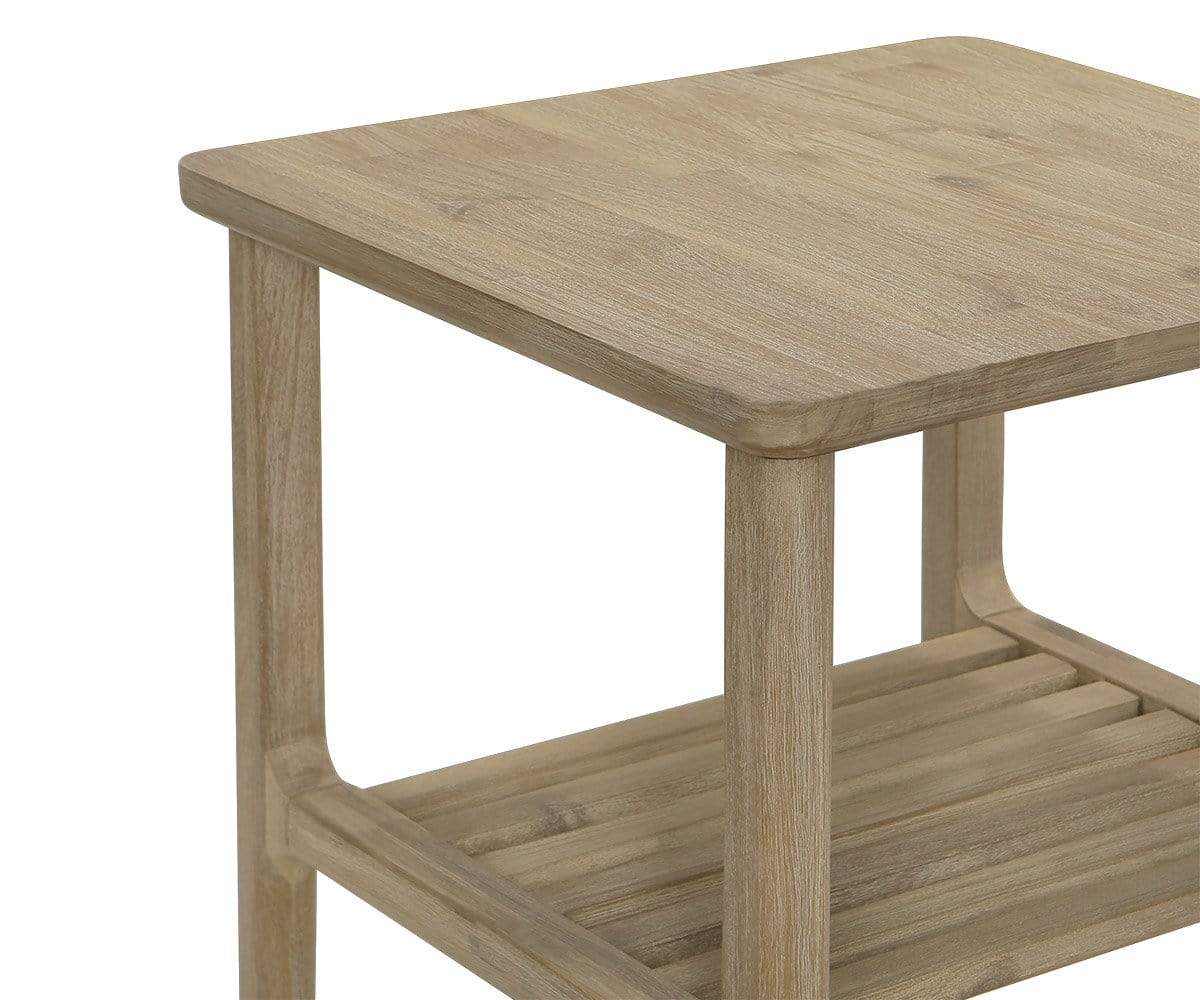 Crafted from solid acacia and finished with a unique grey stain, the Eckler end table is an understated accent that works in a variety of design schemes. A slatted shelf offers additional storage for essentials in your living space.