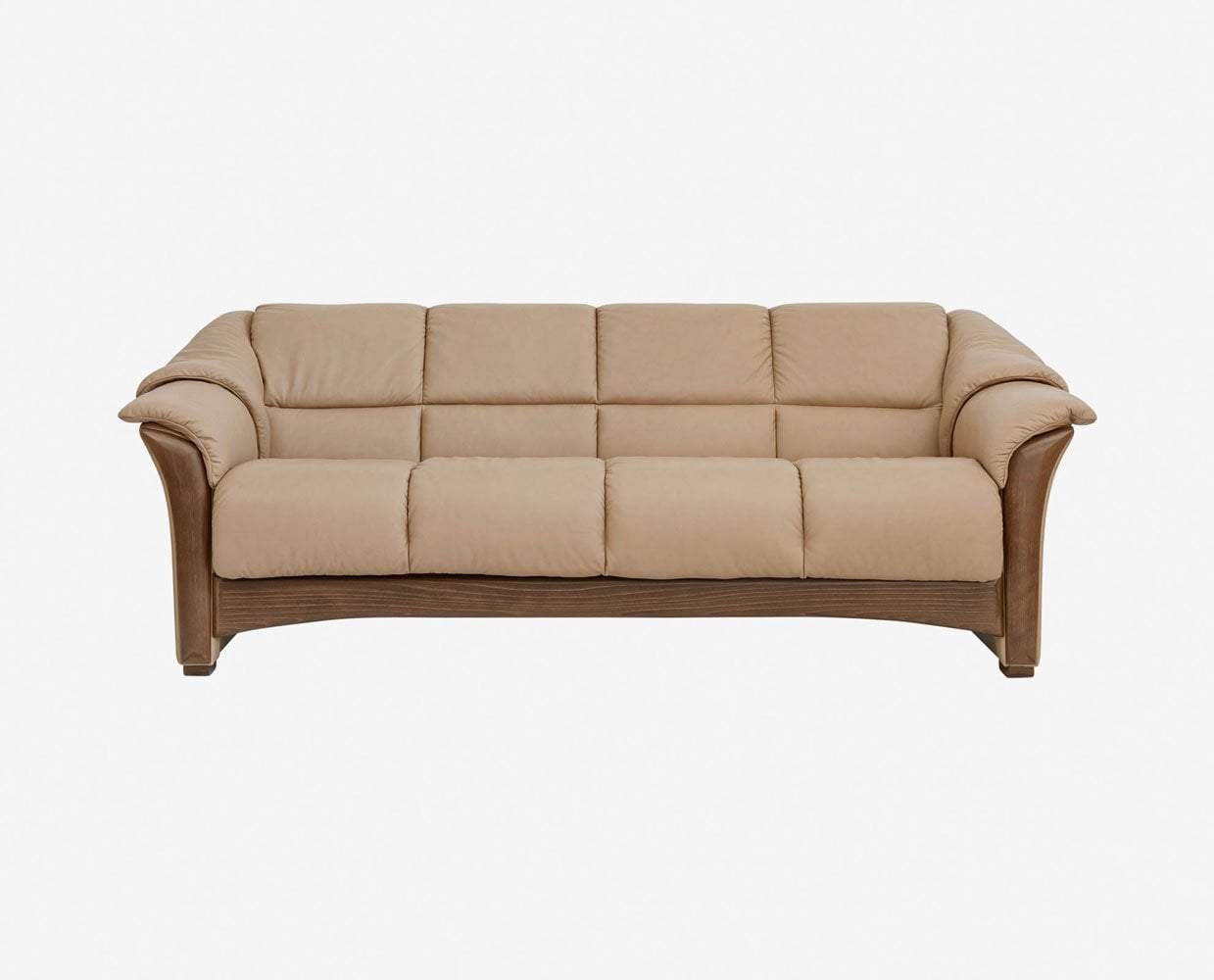 You'll discover comfort at the core of the Ekornes® Oslo leather sofa. Made in Norway, the high curved arms and exposed wood trim complete the warm, soft shape of this sofa.