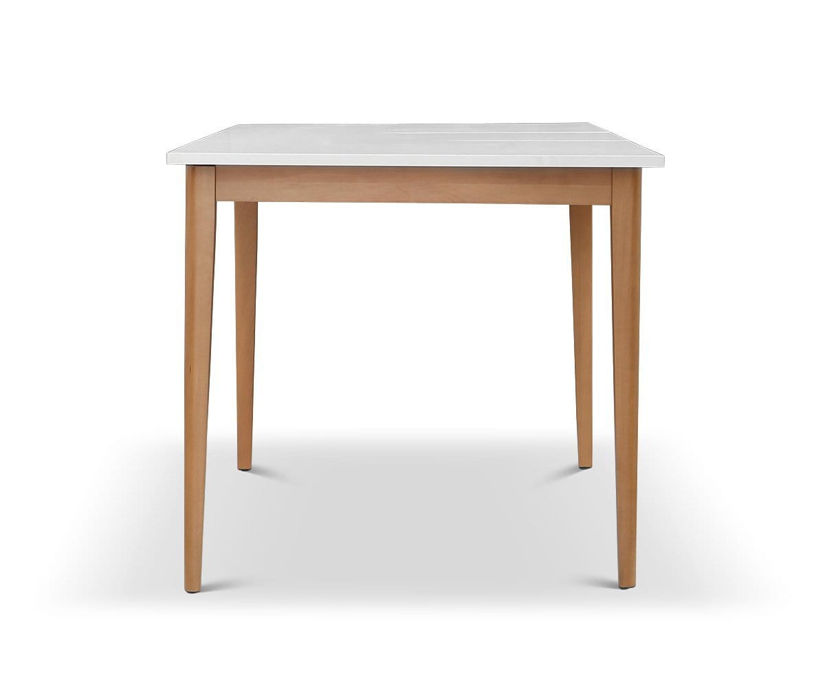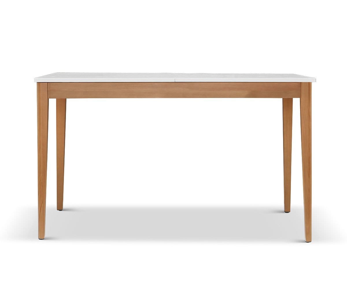 The Eptri rectangular extension dining table brings the minimalist elegance of Scandinavian design to your dining room. Tapered legs and a slim apron support the contrasting white table top for a unique two-tone look. Included extension leaves ensure plenty of space for surprise guests.