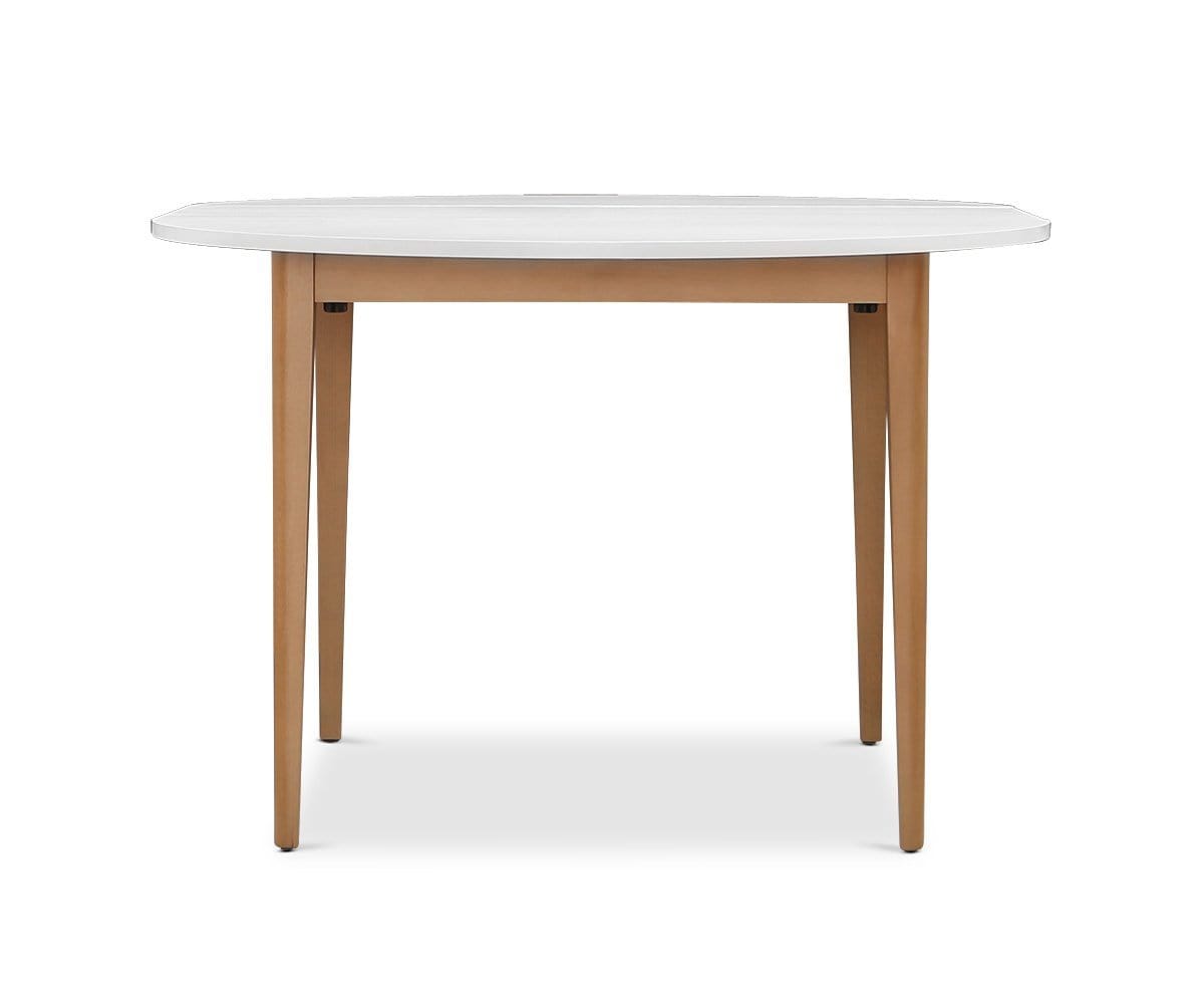 Choose the Eptri round extension dining table for smaller spaces. Tapered legs and a slim apron support the contrasting white table top for a two-tone look that is distinctly Scandinavian. Included extension leaves ensure plenty of space for surprise guests.